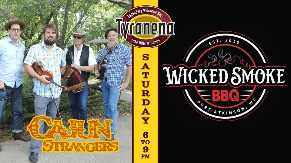 The Cajun Strangers are a premier dance band specializing in the traditional music of Southwest Louisiana and East Texas. A local fixture for over 20 years, the group is celebrated for its authentic reproduction of the “porch music” tradition, blending energetic two-steps, waltzes, Cajun swing, and zydeco. The band’s repertoire consists largely of songs sung in Cajun French, performed on traditional instruments like the button accordion and fiddle.They have achieved significant recognition within the Cajun music community having twice won the prestigious Prix Dehors de Nous award (2007 and 2010) from the Cajun French Music Association in Louisiana, which honors the best Cajun album released by a band outside of Louisiana and East Texas.Wicked Smoke BBQ is a professional barbecue operation based in Fort Atkinson that transitioned from a world-class competition team to a popular food truck. Owned by Jeff and Julie Stout, the business has earned over 25 top-10 finishes in prestigious events like the Jack Daniel’s World Championship. They are best known for their championship-quality smoked meats and creative, hearty side dishes.No cover charge; no carry-in beverages. Probably a good idea to bring a picnic blanket or lawn chair if you want to be guaranteed a seat!