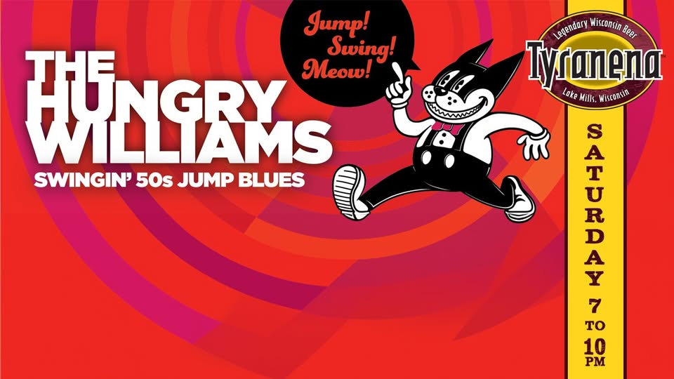 The Hungry Williams play swinging R&B from the late 50’s and 60’s, with a big dose of New Orleans rock ‘n roll. They love adding some “greazy swing” to the local scene!The Fharmacy’s kitchen will be OPEN during Saturday evening performances until 9 pm. No cover charge; no carry-in food or beverages are allowed. #tyranenalivemusic